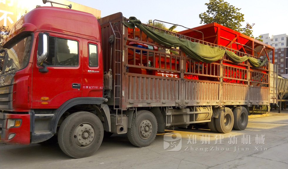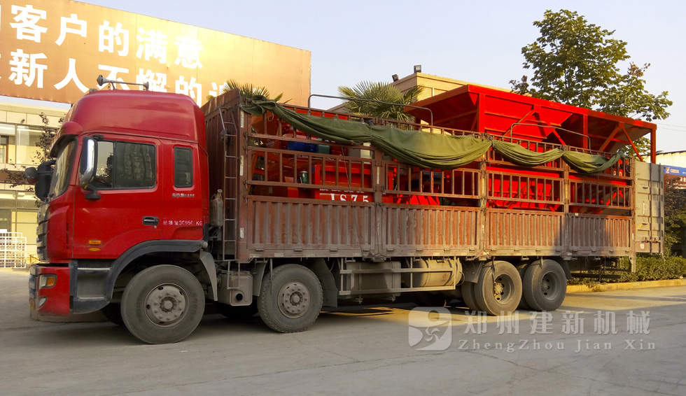 9月15日,周口用戶訂制的HZS35混凝土攪拌站設(shè)備,于生產(chǎn)廠家建新機械裝上卡車,等待發(fā)往河南周口。