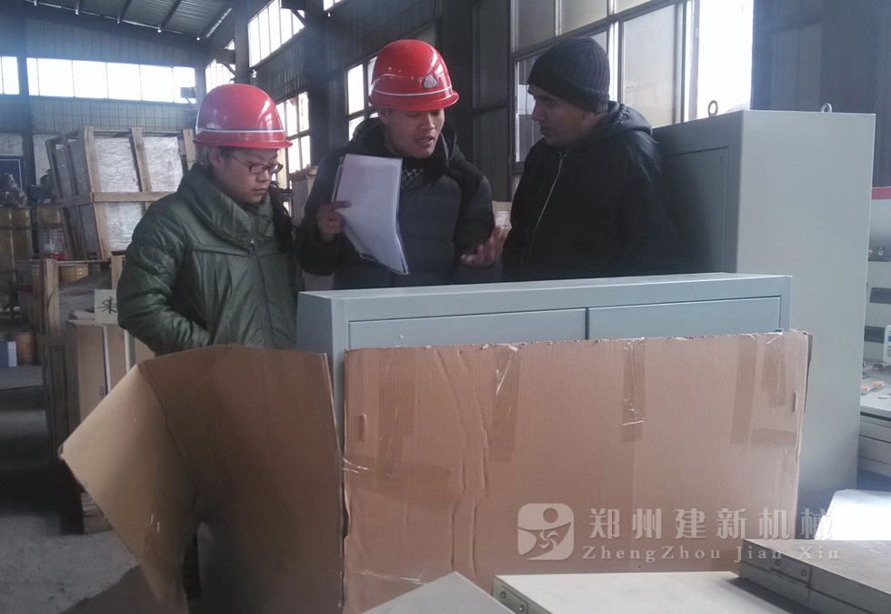 來自馬來西亞的客戶在建新公司外貿部楊經理的帶下,參觀了建新公司的生產車間、倉庫等,對混凝土攪拌站的各種主要零部件、制作工藝、材質等,作了詳細深入的了解。